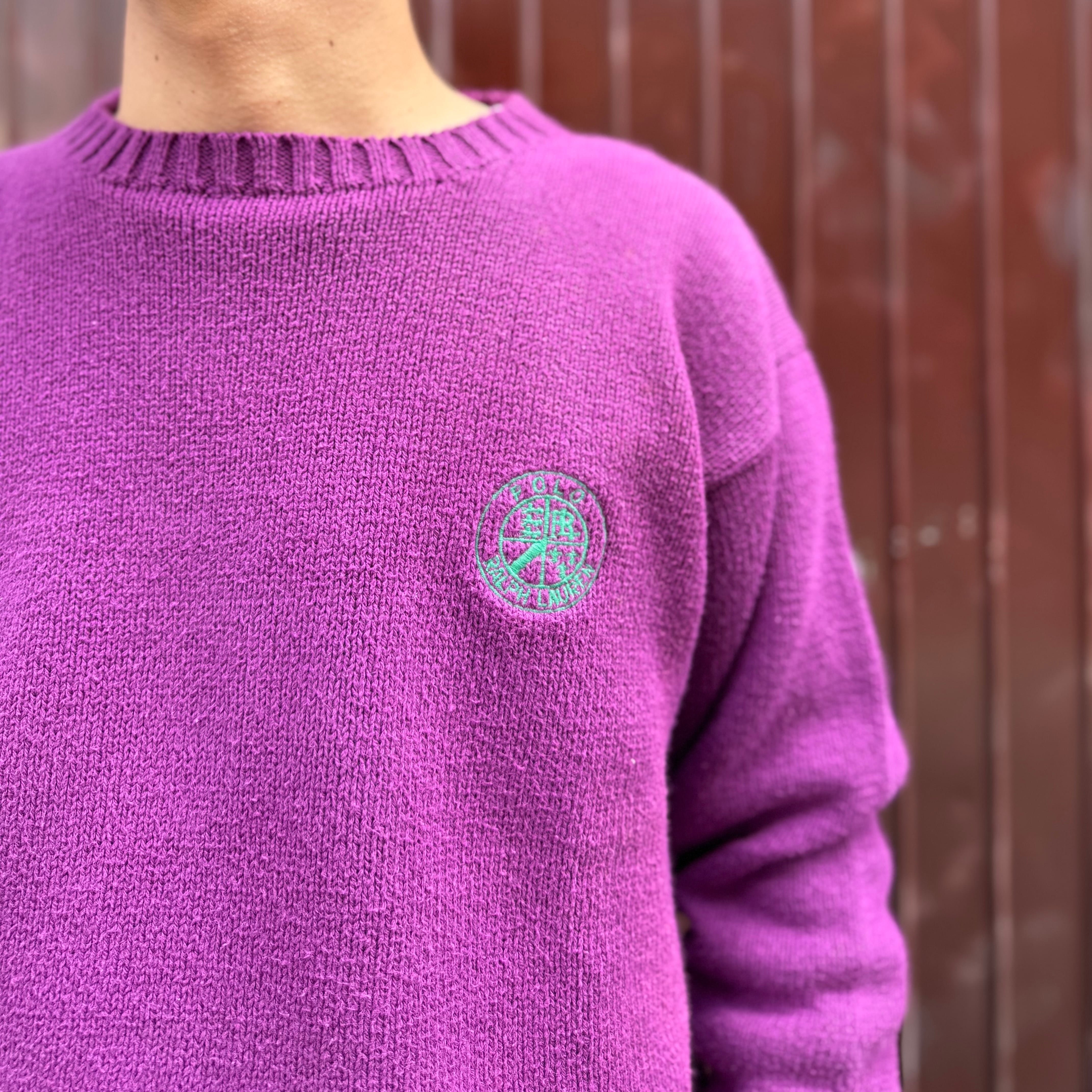 80s Ralph Lauren Cookie Logo Embroidery Cotton Knit Sweater 80年代 ラルフローレン クッキーロゴ 刺繍 ニット セーター