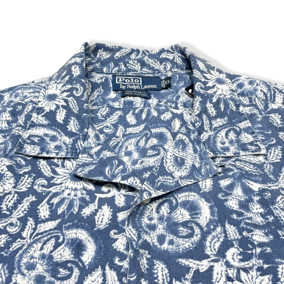 ■ 90s Ralph Lauren "CALDWELL" Indigo Botanical Open Collar Shirt (XL)